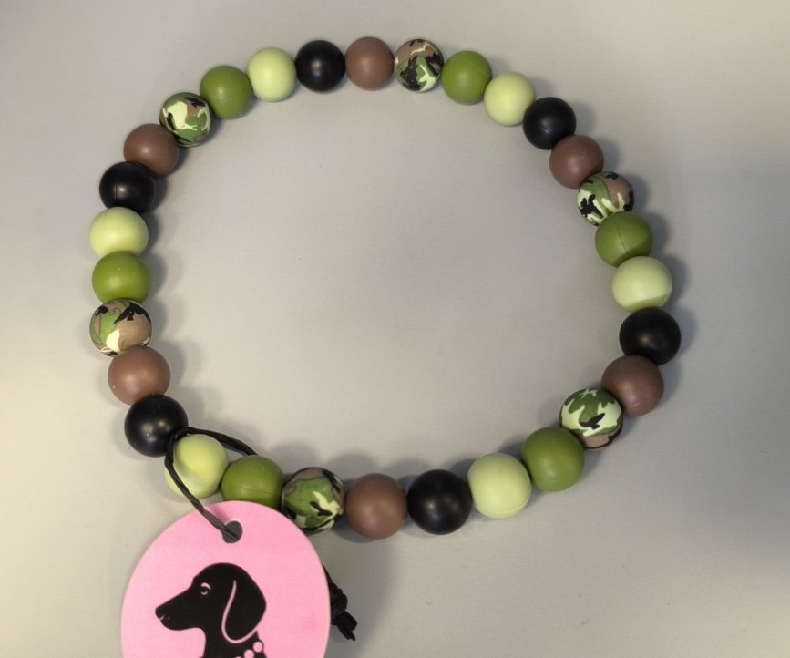 Színek: zöldes, bézs, barna árnyalatok + camouflage gyöngyök