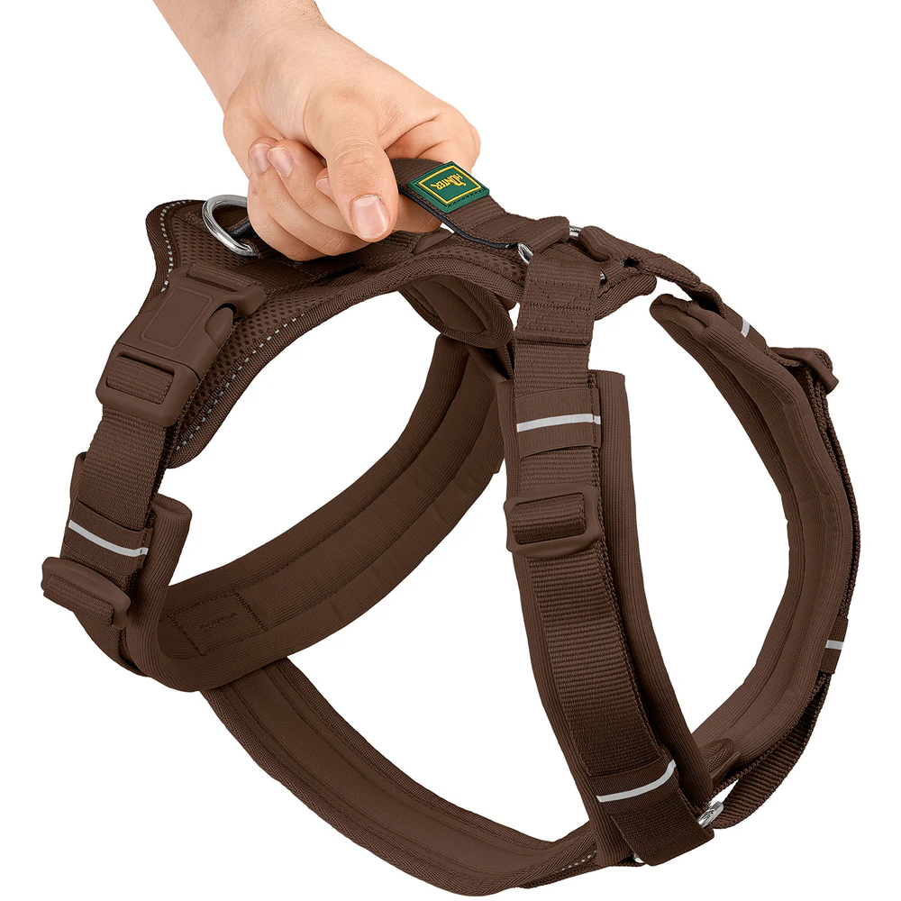 A Hunter Maldon Up Y-hám hátán található erős, párnázott fogó segítségével gyorsan és biztonságosan meg tudod fogni kutyádat. Ez nem csak kényelmesebb, hanem sok helyzetben biztonságosabb is.