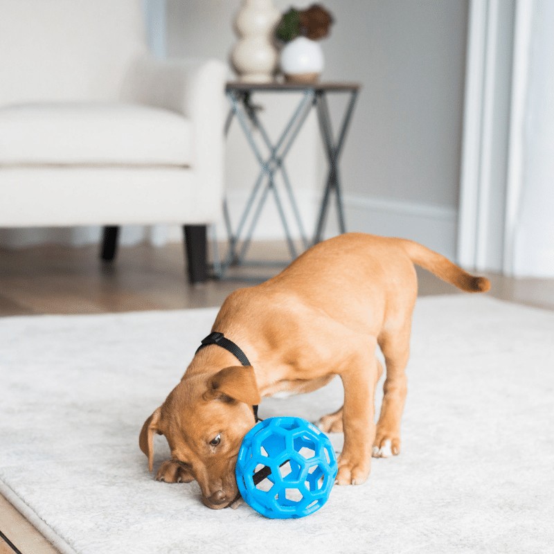 A labda réseibe kötél is befűzhető, így a játék könnyedén átalakítható húzogatós, rángatós játékká. Puha, mégis strapabíró anyaga miatt a Hol-ee Roller könnyen dobható, rúgható, és a kutya számára is egyszerűen megfogható, legyen szó kisebb vagy nagyobb méretről.