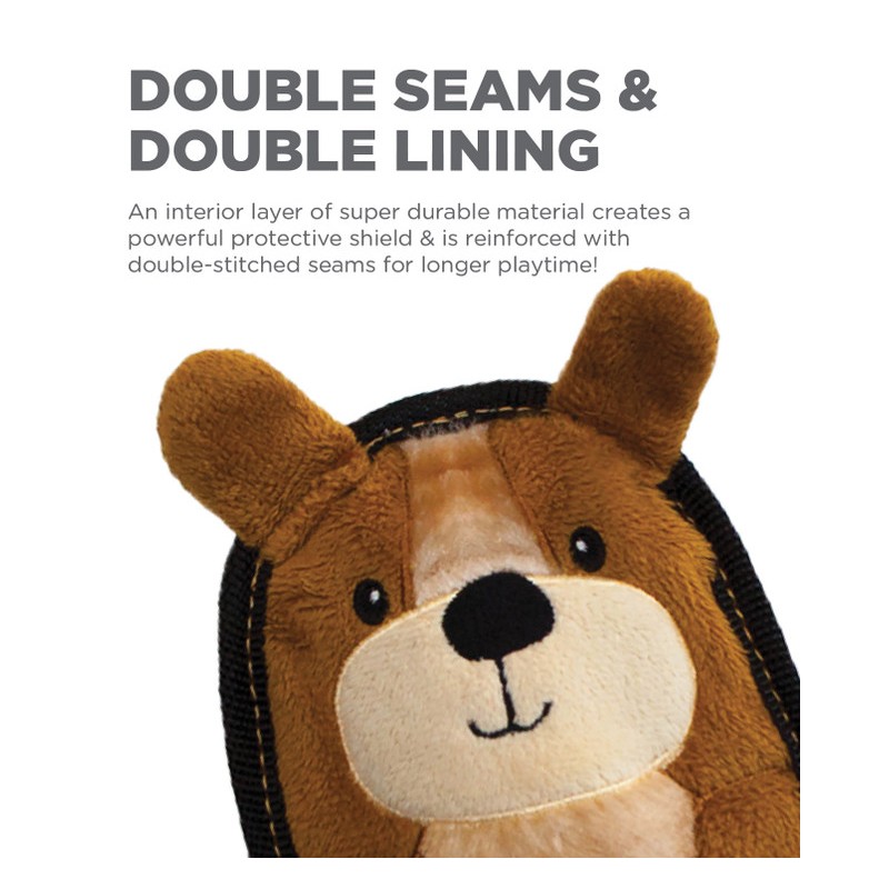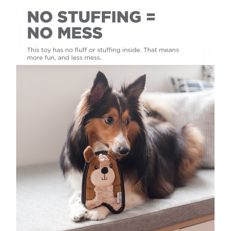 A titok a Dura-Tuff belső bélésben és a kétrétegű varrásban rejlik, ami extra ellenállóvá teszi a játékot a húzogatás, rázás és dobálás során. Mivel nincs benne töltelék, nem kell aggódnod, ha a kutyád kissé vadabb játékos – nem fog szétrobbanni a nappaliban a plüsshóvihar.