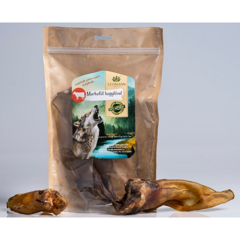 Kutyád is azok közé tartozik, akik imádnak rágcsálni? Akkor a Teomann Szárított Marhafül fülkagylóval lesz az új kedvence! Ez a 100%-ban természetes, mesterséges adalékanyagoktól mentes rágcsálnivaló nemcsak hosszan tartó élvezetet nyújt, hanem támogatja a fogak és a fogíny egészségét is.