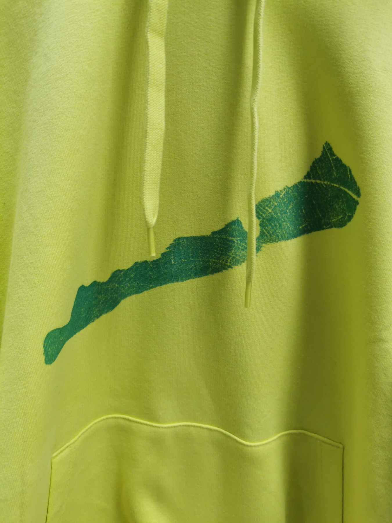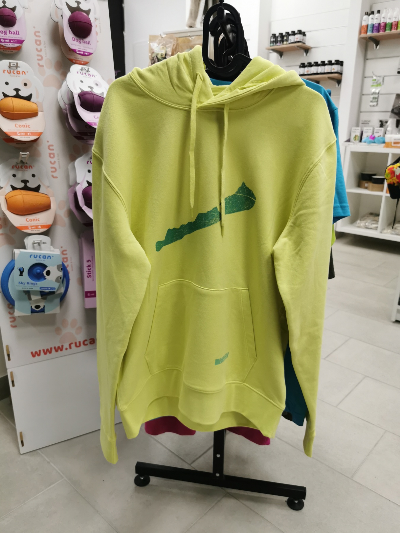 BALATON OCS biopamut kapucnis pulóver a tó ikonikus formájával és kézzel készült fanyomatával hozza el a Balaton könnyed, napfényes hangulatát.